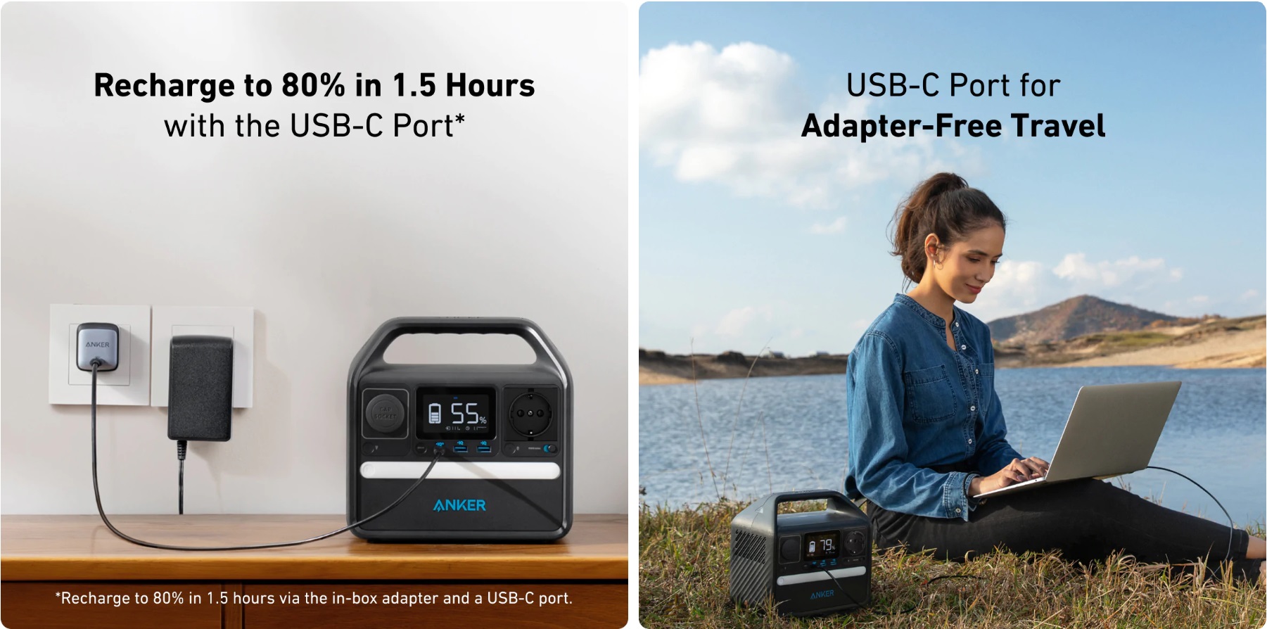 Recharge Information Recharge Time by DC Adapter + Type-C PD: 2.5hrs (1x60PD+65W Adapter)