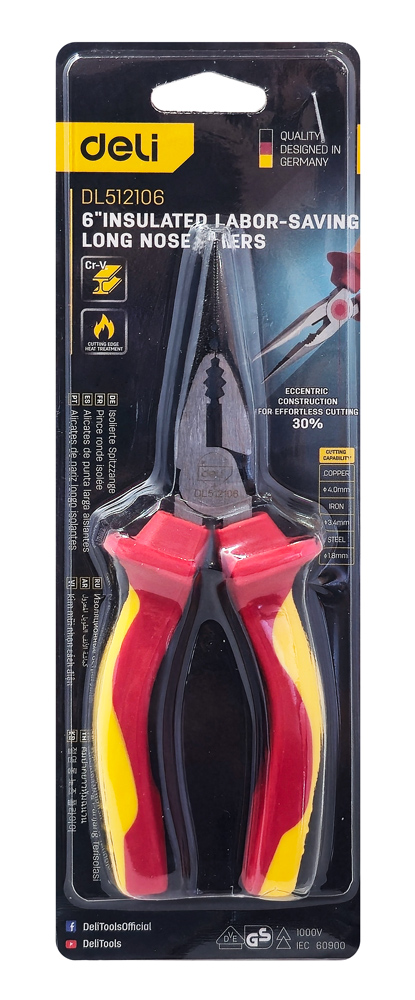 Μυτοτσίμπιδο ίσιο ηλεκτρολόγου της Deli σχεδιασμένο για ασφαλή και αποδοτική εργασία σε ηλεκτρικές εγκαταστάσεις.