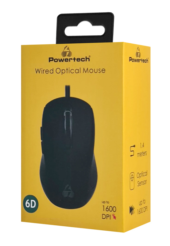 POWERTECH ενσύρματο ποντίκι PT-1290, οπτικό, έως 1600DPI, μαύρο