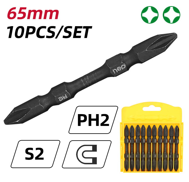 DELI σετ μύτες κατσαβιδιού DL252202 για δραπανοκατσάβιδο, διπλή κεφαλή, σταυρωτές, PH2x65mm, 10τμχ