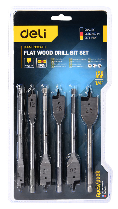 DELI σετ τρυπάνια φτερού DH-MBZ006-ED1 για ξύλο, χάλυβας άνθρακα, 10/12/16/18/20/25mm, εξάγωνο, 6τμχ