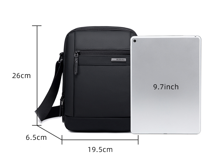GOLDEN WOLF τσάντα ώμου GKB00732 με θήκη tablet, 3L, μαύρη