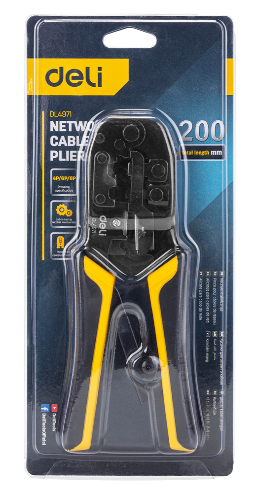 DELI πρέσα ακροδεκτών καλωδίων δικτύου DL4971, 4P/6P/8P, 200mm