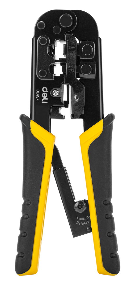 Πολυλειτουργική πρέσα ακροδεκτών καλωδίων της Deli ιδανική για κοπή, απογύμνωση και πρεσάρισμα ακροδεκτών σε καλώδια δικτύου