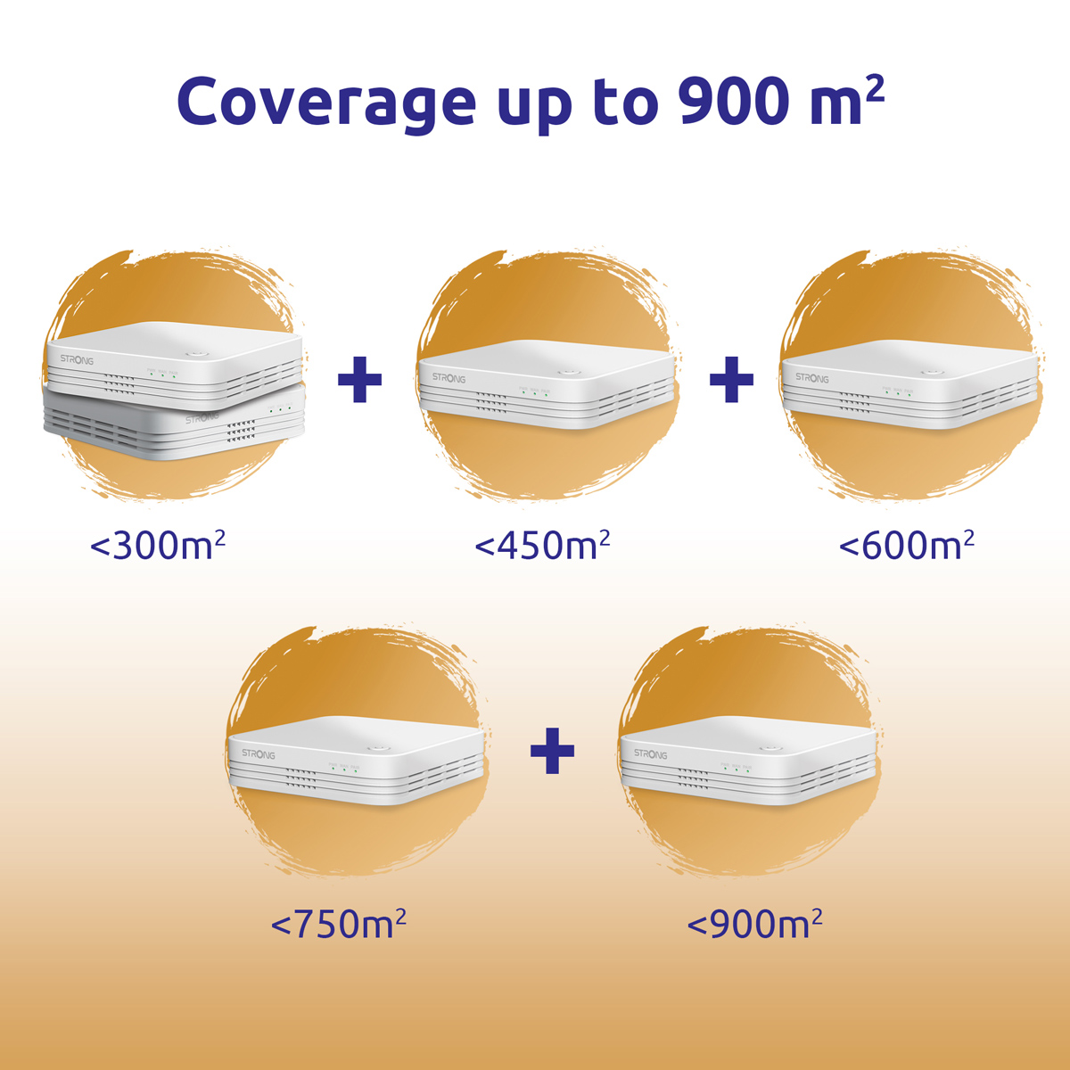 Ανάλογα με το μέγεθος του σπιτιού σας, μπορείτε να προσθέσετε έως και 3 επιπλέον ATRIA Mesh 1200 μονάδες για ακόμη μεγαλύτερο εύρος κάλυψης (έως 6 ATRIA Mesh 1200 καλύπτουν έκταση έως 900m²).