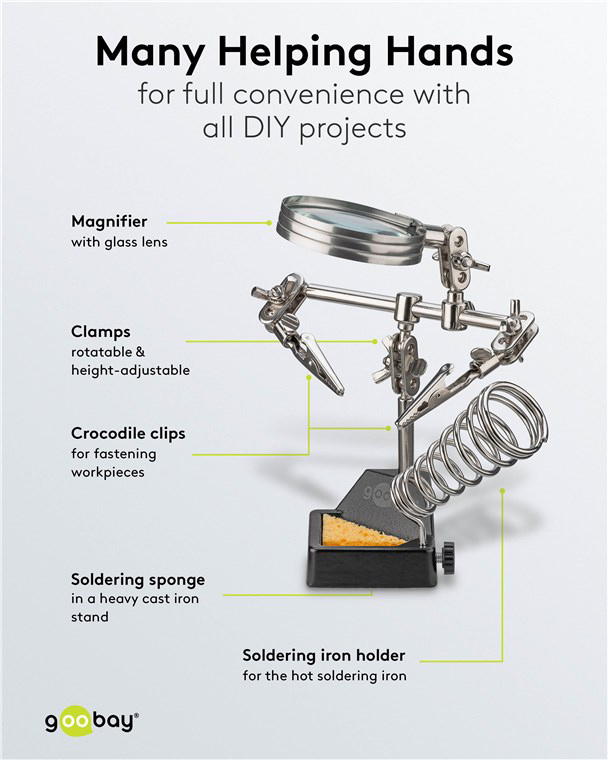 GOOBAY βάση στήριξης πλακέτας 76560 με μεγεθυντικό φακό & θέση για κολλητήρι, 2x βραχίονες, μαύρη