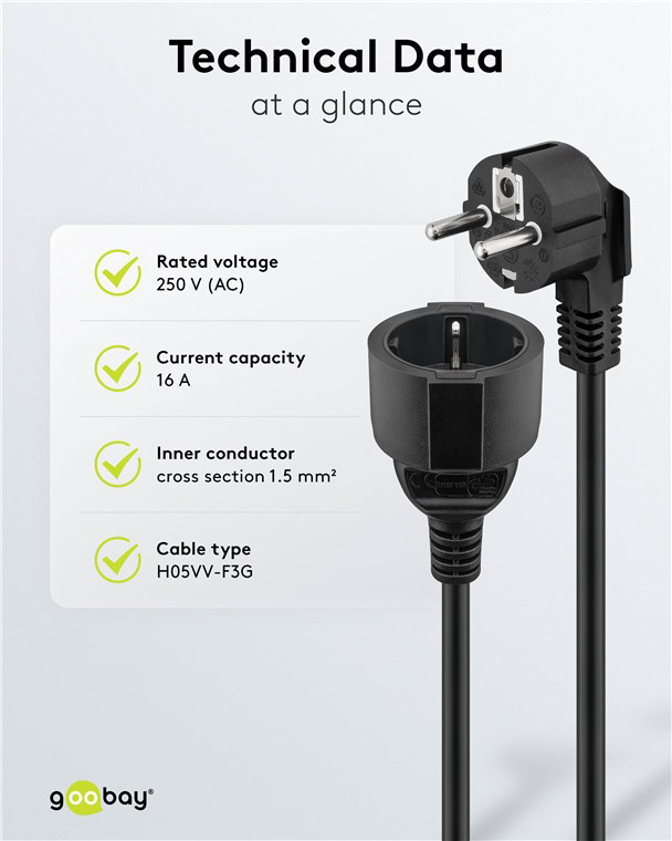GOOBAY μπαλαντέζα προέκταση ρεύματος 93094, schuko, 3x 1.5mm², 5m, μαύρη