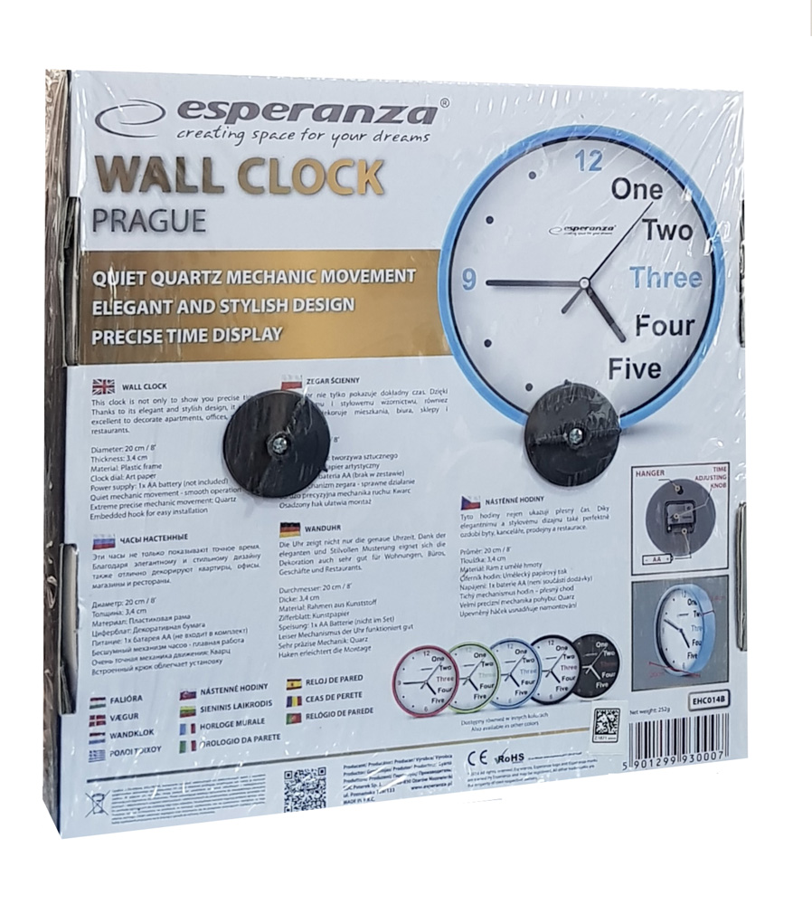 ESPERANZA ρολόι τοίχου Prague EHC014B, 20cm, μπλε