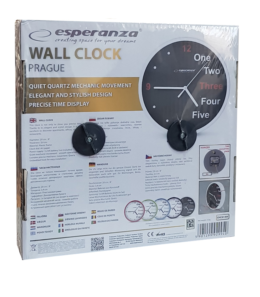 ESPERANZA ρολόι τοίχου Prague EHC014W, 20cm, λευκό