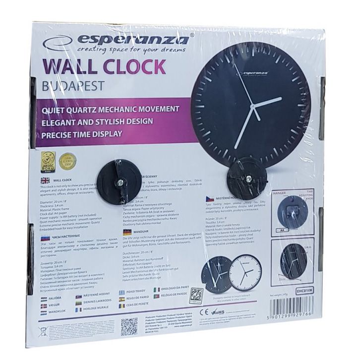 Το ρολόϊ τοίχου Esperanza BUDAPEST EHC010W δεν χρησιμεύει μόνο στο να δείχνει την ώρα.