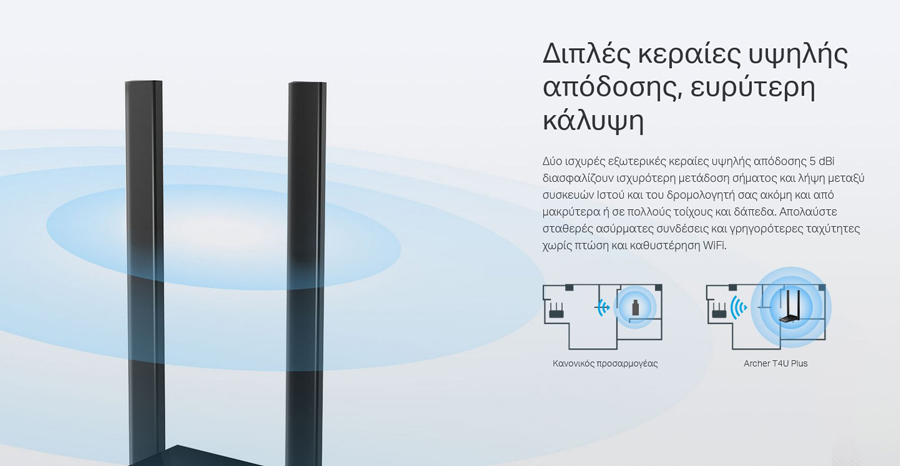 ζώνες 2,4GHz και 5GHz για ευέλικτη συνδεσιμότητα