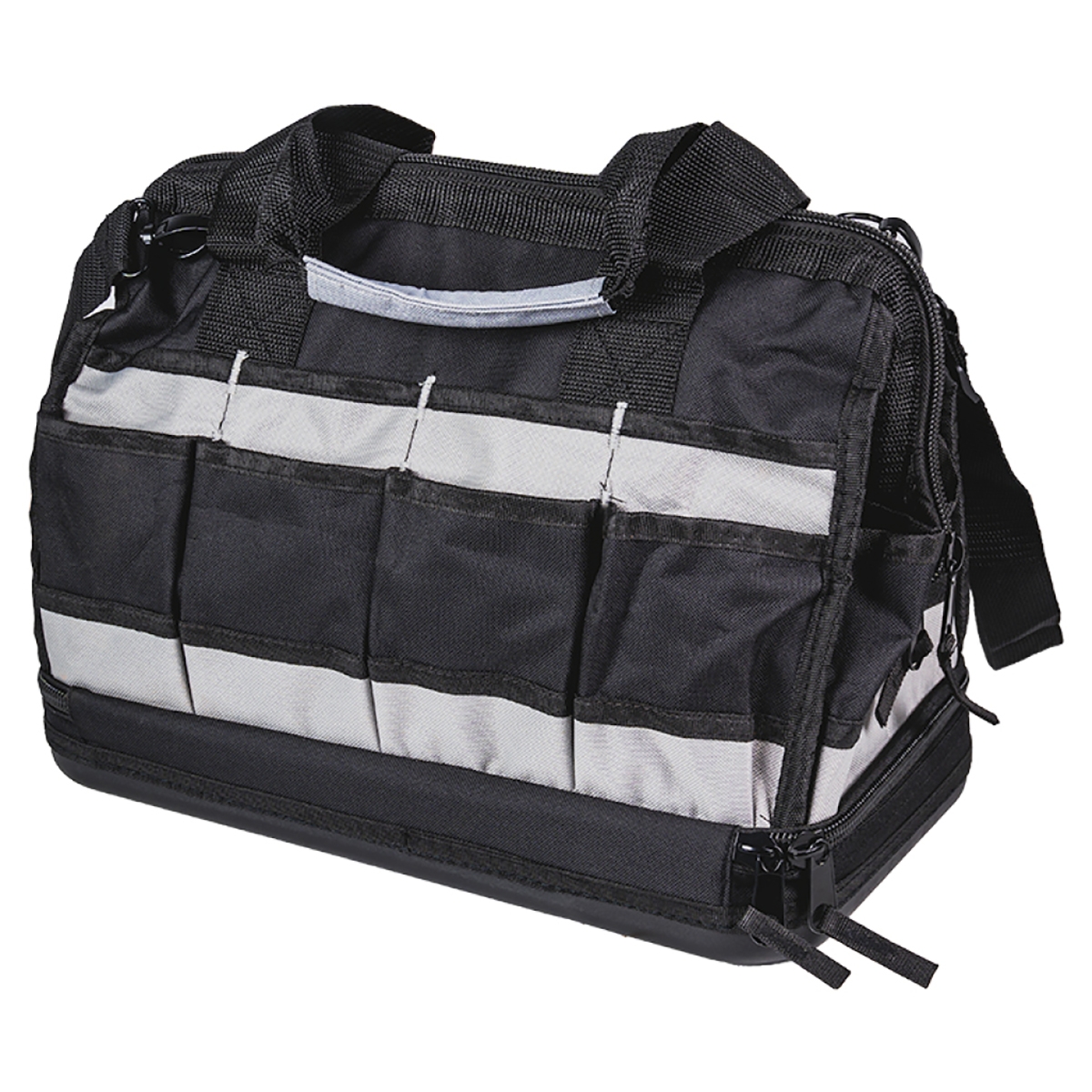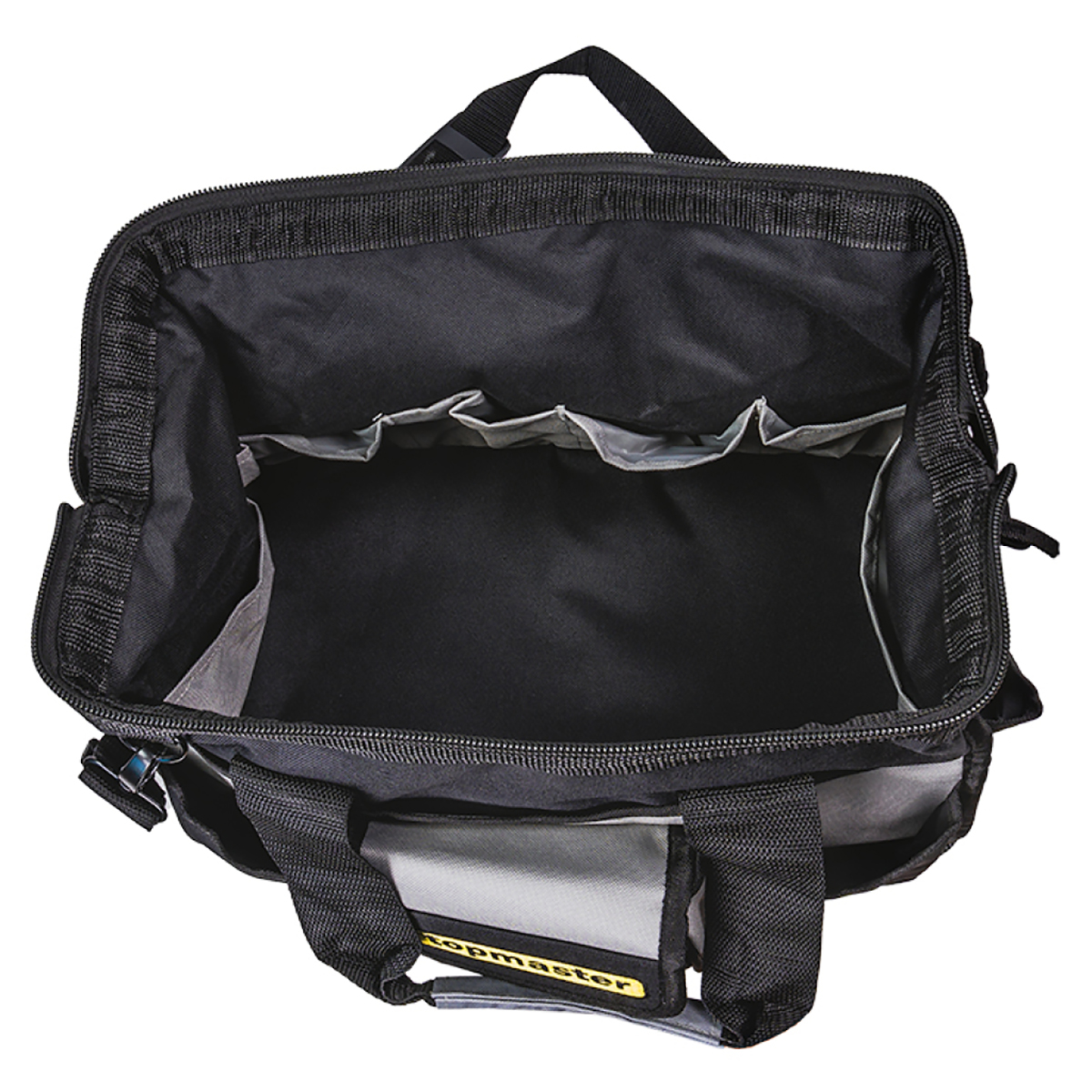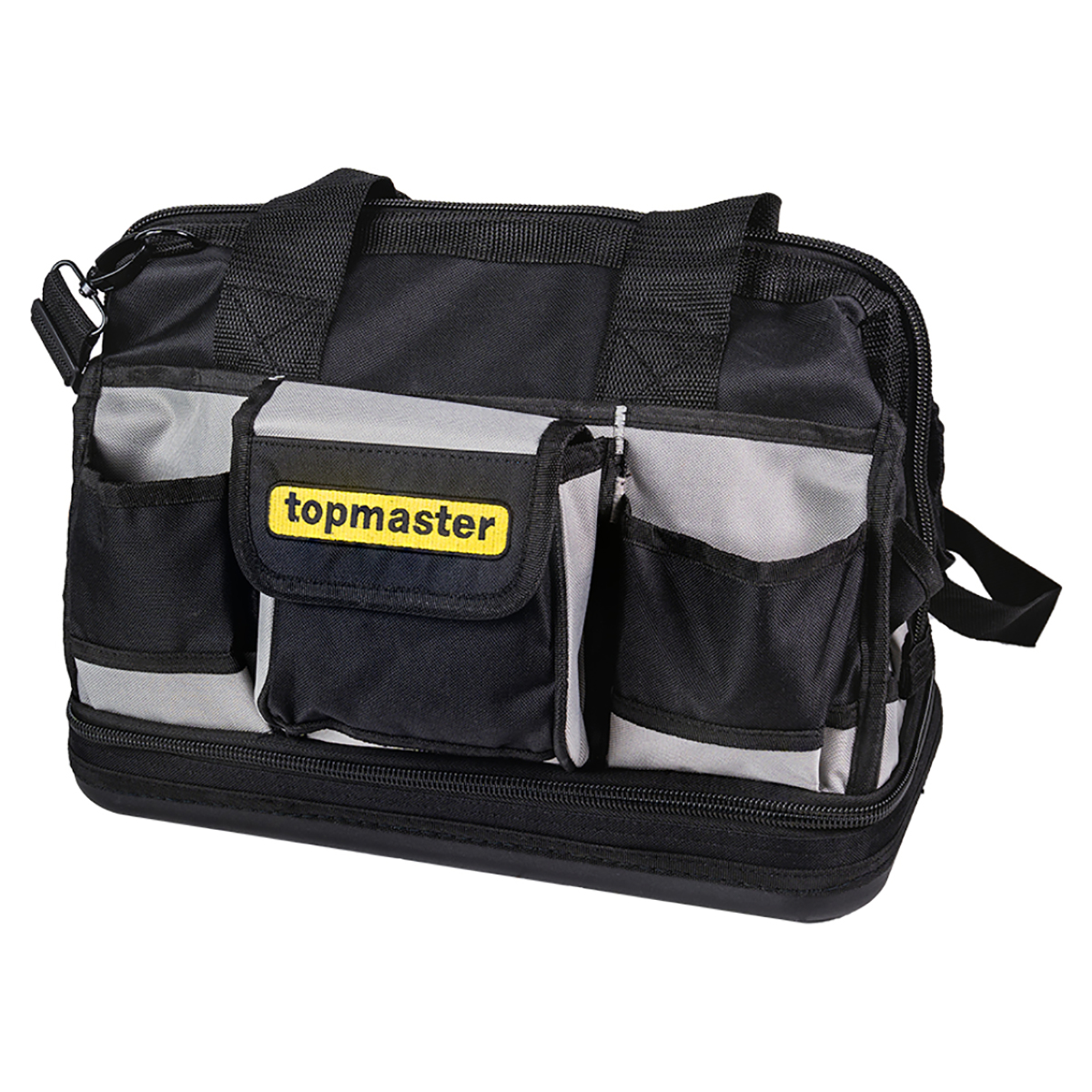 Η τσάντα εργαλείων ώμου TOP MASTER σε μαύρο χρώμα είναι σχεδιασμένη για απόλυτη λειτουργικότητα και οργάνωση. Κατασκευασμένη από ανθεκτικό πολυεστέρα, διαθέτει σκληρό πάτο για αντοχή και σταθερότητα. Με πολλαπλές εσωτερικές και εξωτερικές τσέπες, η τσάντα προσφέρει άφθονο χώρο για την αποθήκευση και την τακτοποίηση των εργαλείων και των αξεσουάρ σας. Εξοπλισμένη με άνετες λαβές και ρυθμιζόμενο ιμάντα ώμου, επιτρέπει την εύκολη και άνετη μεταφορά, κάνοντάς την ιδανική επιλογή για επαγγελματίες και ερασιτέχνες.