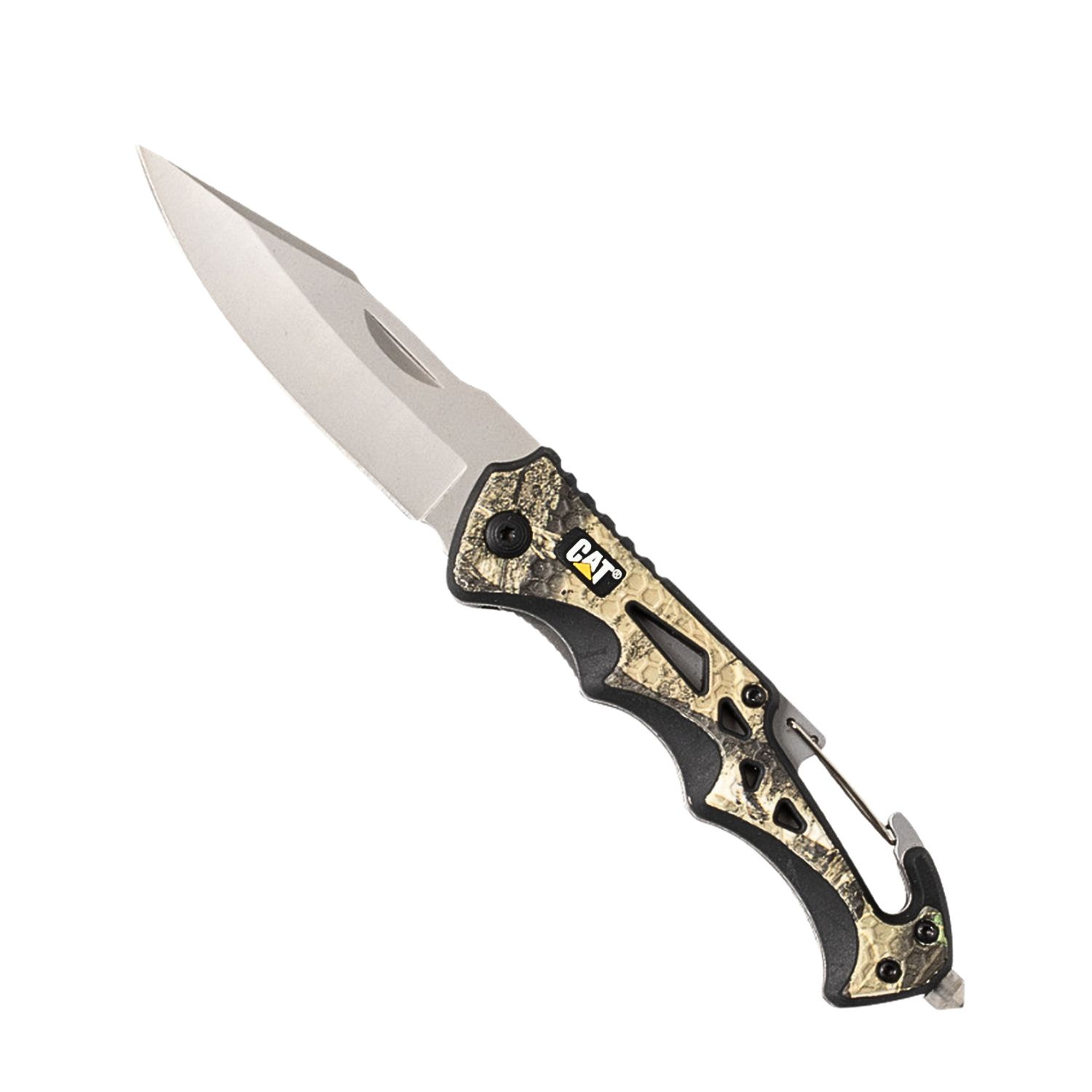 Ο αναδιπλούμενος σουγιάς CAT 107606 με Real Tree Camouflage είναι ιδανικός για εξωτερικές δραστηριότητες και καθημερινή χρήση. Με το συνολικό του μήκος 20,2 εκατοστά και το βάρος 115 γραμμαρίων, προσφέρει άνεση και φορητότητα. Η λεπίδα από ανοξείδωτο ατσάλι 7Cr17MoV είναι ανθεκτική και αξιόπιστη, ενώ η λαβή από PP/TPR παρέχει σταθερό κράτημα και άνεση στη χρήση. Επιπλέον, διαθέτει κλειδαριά επένδυσης, καραμπίνερ και κλιπ τσέπης για ευκολία μεταφοράς και πρόσβασης.