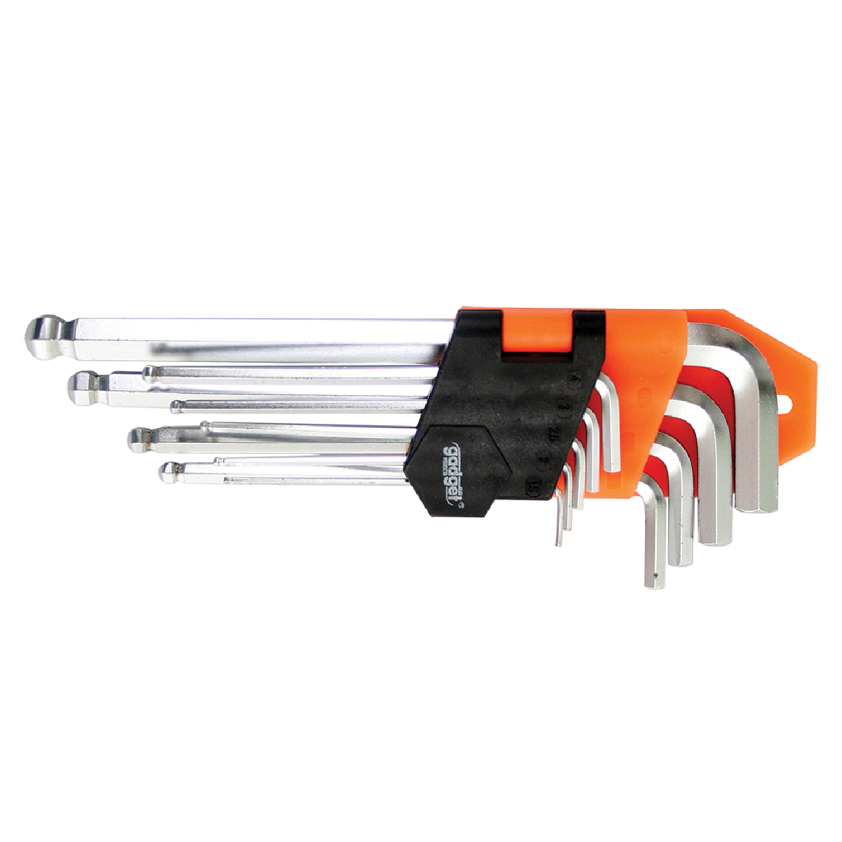 Κατασκευασμένο από χρωμοβαναδιούχο ατσάλι (Cr-V), αυτό το σετ περιλαμβάνει 9 τεμάχια με μεγέθη ποικίλα από 1.5 έως 10 και μπίλια στις άκρες τους