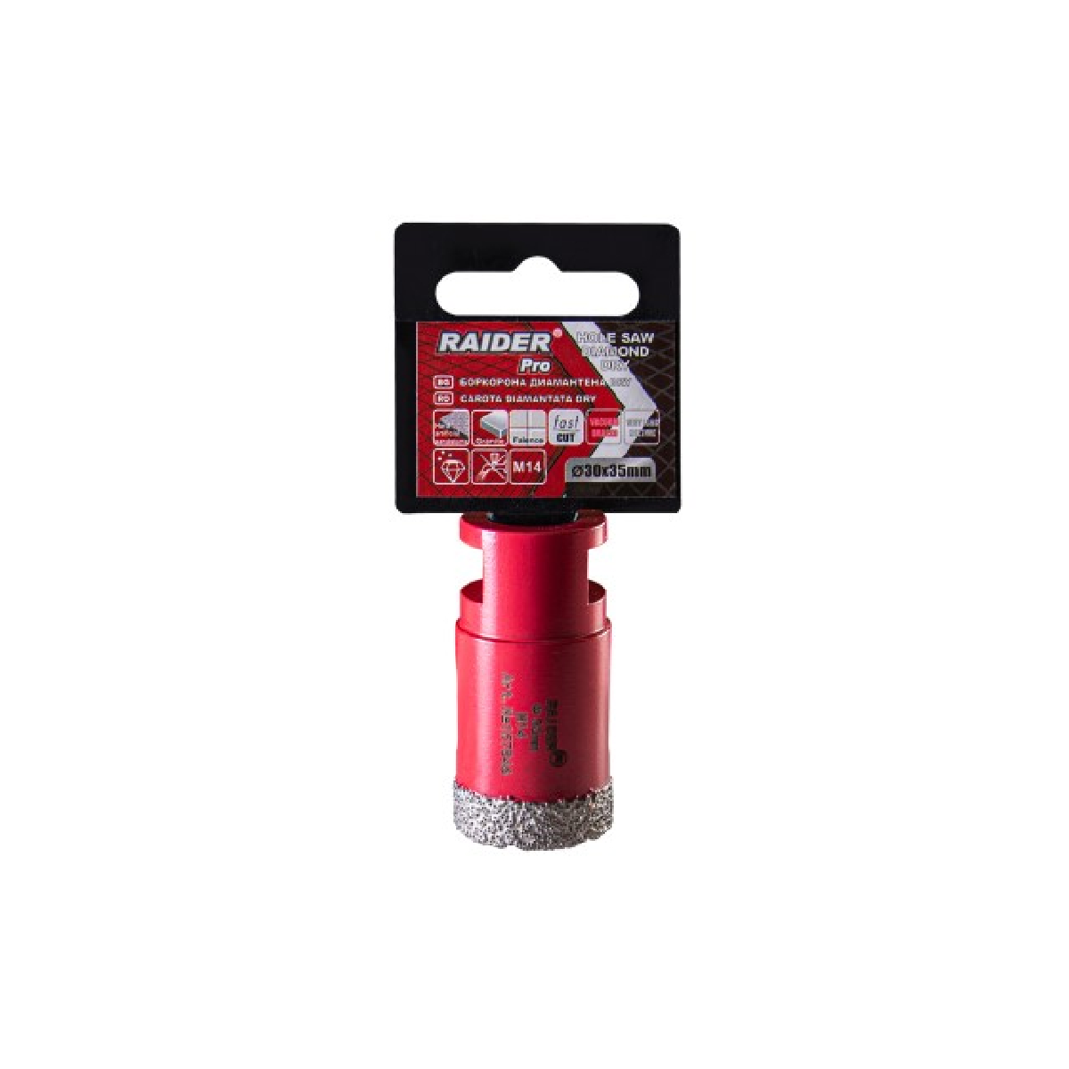 Το ποτηροτρύπανι διαμαντέ M14 της RAIDER, με διάμετρο κοπής 30mm, εαποτελεί ιδανική επιλογή για ακριβείς κοπές σε διάφορα υλικά.