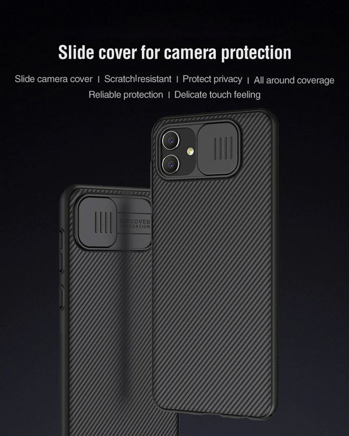 Η σειρά CamShield της Nillkin χαρακτηρίζεται από την ενισχυμένη προστασία που προσφέρει το σκληρό υλικό κατασκευής της με την ανάγλυφη επιφάνεια αλλά και την έξτρα προστασία των καμερών και της ιδιωτικότητας σας, χάρη στο συρόμενο καπάκι της. Η επιφάνεια της είναι αντιολισθητική, έχει ενισχυμένα άκρα, δεν χαράσσεται και δεν κάνει δαχτυλιές.