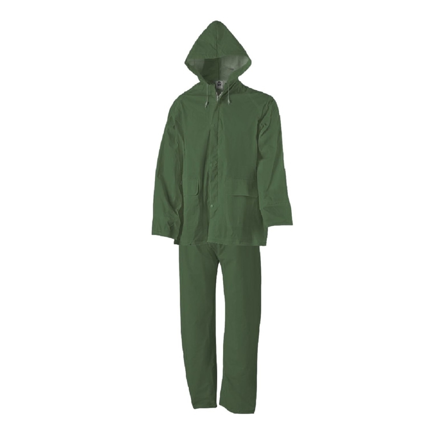 Το αδιάβροχο κοστούμι Tempest σε πράσινο χρώμα είναι ιδανικό για εργασία σε υγρές ή δύσκολες καιρικές συνθήκες, προσφέροντας συνδυασμένη προστασία και άνεση. Το σετ περιλαμβάνει μπουφάν και παντελόνι, κατασκευασμένα από ανθεκτικό ύφασμα πολυεστέρα/PVC 415g/m². Οι θερμικά σφραγισμένες ραφές εξασφαλίζουν πλήρη αδιαβροχοποίηση, ενώ η ενσωματωμένη κουκούλα και οι ελαστικές λεπτομέρειες σε μανσέτες και μέση βελτιώνουν την εφαρμογή και τη λειτουργικότητα. Το κοστούμι είναι ιδανικό για καθημερινή χρήση σε εξωτερικές δραστηριότητες ή εργασία, συνδυάζοντας αδιάβροχη προστασία με αντιανεμική δράση.