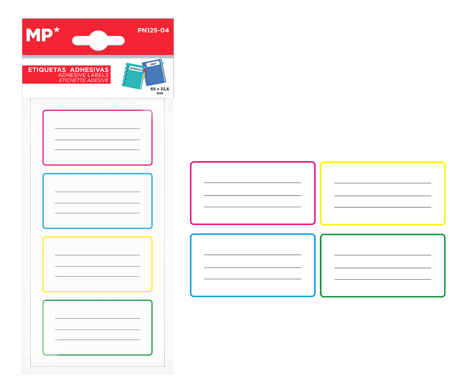 MP αυτοκόλλητες ετικέτες τετραδίων PN125-04, 65x32.6mm, 4 χρώματα, 24τμχ