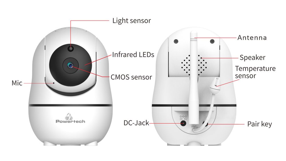 Ασύρματη ενδοεπικοινωνία μωρού της Powertech που αποτελείται από κάμερα και οθόνη 5".