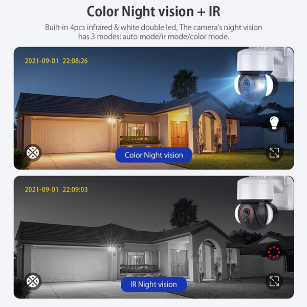 Day and night conversion: Red IR and 6pcs floodlight support Automatic