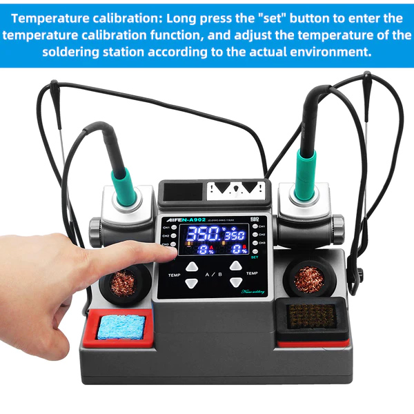 AIFEN ψηφιακός σταθμός συγκόλλησης A902, 2x κολλητήρια, 350W, 110-450 °C