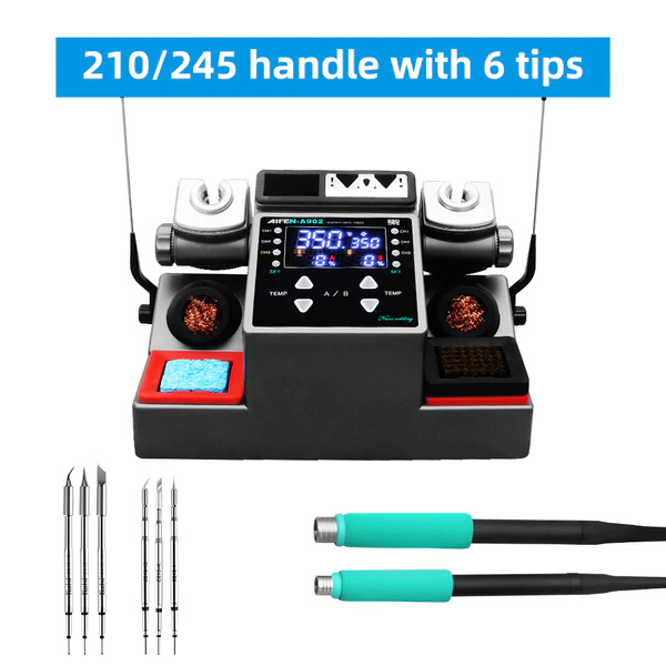 Ο ψηφιακός σταθμός συγκόλλησης A902 της Aifen είναι ένα εξαιρετικό εργαλείο που προσφέρει ευελιξία και αξιόπιστη απόδοση στο χώρο της συγκόλλησης. Με δύο κολλητήρια και ψηφιακή οθόνη, είναι σχεδιασμένος για να καλύψει τις ανάγκες σε όλα τα είδη συγκόλλησης.