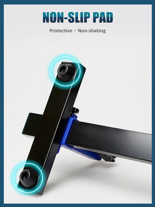 Η βάση της διαθέτει αντιολισθητικά pads, ενώ, οι βραχίονες συγκράτησης είναι περιστρεφόμενοι, προσφέροντας μεγαλύτερη σταθερότητα και ευελιξία κατά την εργασία.