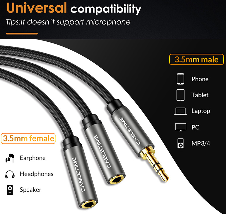 CABLETIME καλώδιο ήχου 3.5mm σε 2x 3.5mm CT-P12G, 3-pole, 20cm, μαύρο