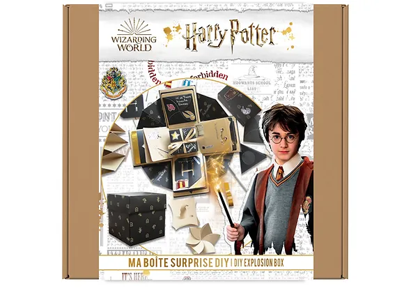 Το κουτί με τις εκπλήξεις περιλαμβάνει 15 χάρτινα στοιχεία προς συναρμολόγηση με θέμα τον Harry Potter, 2 φύλλα με αυτοκόλλητα, 2 μεταλικούς μαρκαδόρους, 1 στυλό/gel στα χρώματα του ουράνιου τόξου, μια ταινία διπλής όψεως, μια κορδέλα και οδηγίες.