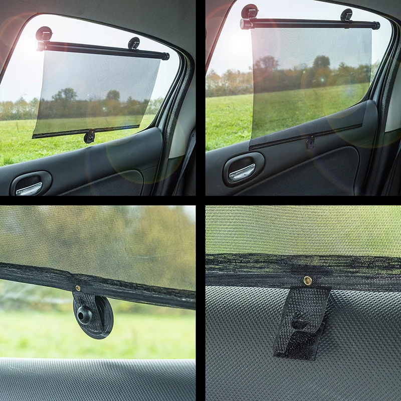 Κουρτίνες αυτοκινήτου από την ProPlus κατάλληλες για τα πλαϊνά παράθυρα του αυτοκινήτου. Προστατεύουν το εσωτερικό του αυτοκινήτου από τον ήλιο και τις επιβλαβείς ακτίνες του, κρατώντας την θερμοκρασία του χώρου σε χαμηλότερα επίπεδα.