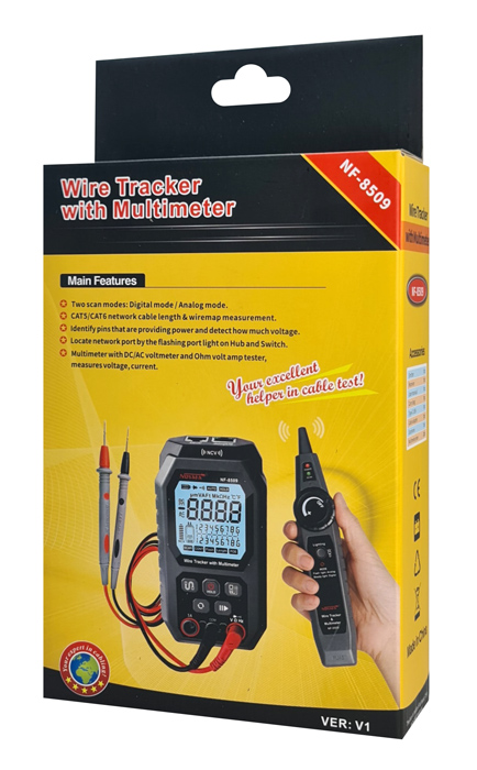 Το NF-8509 είναι ένα αξιόπιστο εργαλείο με πολλαπλές λειτουργίες. Σας επιτρέπει να εντοπίζετε τα καλώδια, το μήκος τους, την ακολουθία γραμμής, την τάση και την αντίσταση του ηλεκτρικού κυκλώματος, την υποστήριξη προτύπων PoE και πολλά άλλα.