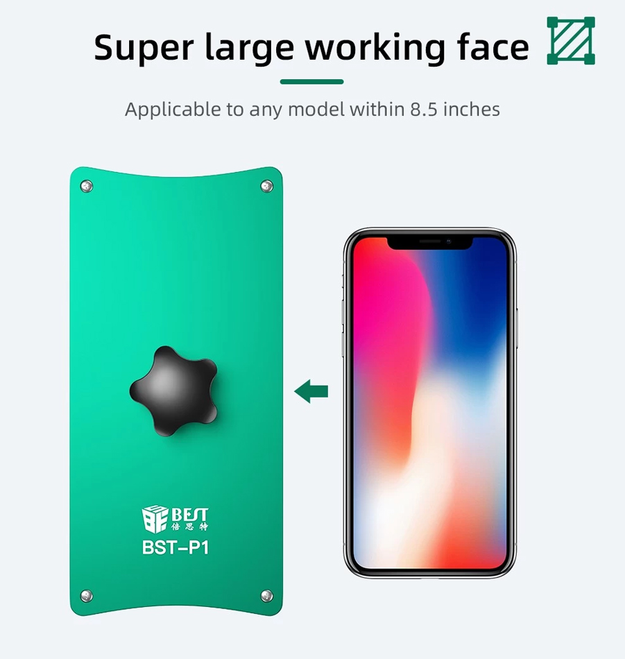Σφιγκτήρας κόλλησης της Best για την επισκευή οθόνης κινητού. Διαθέτει μεγάλη επιφάνεια για οθόνες έως και 8.5" και αντικραδασμικό στρώμα από υλικό EVA, για την προστασία του κινητού.