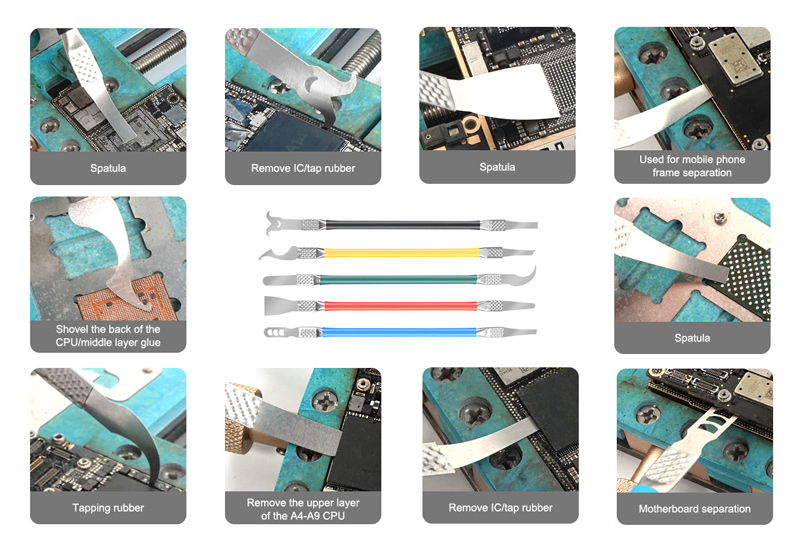 Σετ εργαλείων ανοίγματος με διπλή κεφαλή από την Relife, κατάλληλα για εργασίες όπως αφαίρεση CPU και chip σε επισκευές smartphone.