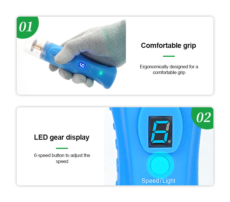Διαθέτει 6 ρυθμιζόμενα επίπεδα ταχύτητας για μεγαλύτερη ακρίβεια και LED φωτισμό για άνετη εργασία ακόμη και στο σκοτάδι.